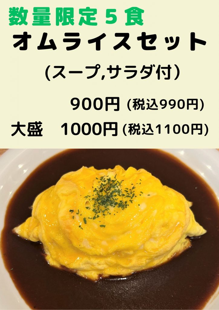 1月19日(月)から洋食メニューより「オムライス」が販売開始となります。